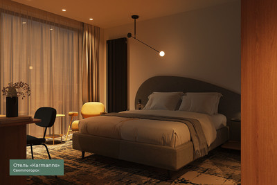 Прекрасный пример использования сверхтеплого света – недавно открывшийся отель Karmann’s в Светлогорске Калининградской области, где локальное освещение в номерах выполнено на даунлайтах с цветовой температурой 2400К.