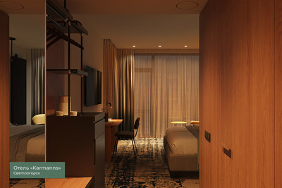 Тандем архитектора Олеси Левкович (архитектурное бюро LEVKOVICH Architects) и светодизайнера Ксении Ланикиной (бюро Yarko-Yarko) решили применить такой прием, чтобы, в том числе, перенести отсветы янтаря, которым богато побережье Балтики, в интерьеры отеля.