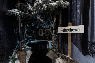 Инсталляция проводит посетителя по зимней деревне в ночь перед казнью Зои. Для имитации тусклого лунного света применяли светильники OPTIK с цветовой температурой 6000К. Погружение в реалистичное мрачное состояние происходит в том числе за счет использования фреймов и световых эффектов, передающих холод деревенской зимы: зрителя встречает игра теней в виде голых веток деревьев. Акцентное освещение этой инсталляции реализовано светильниками MINI FOCUS и WOODY.