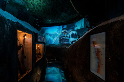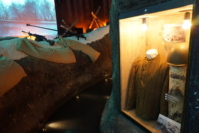 Экспозиция состоит из двух частей: иммерсивного пространства с траншеями и солдатской землянки.