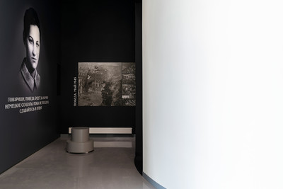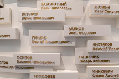 Экспозиционная зона, которая дает зрителю осмыслить произошедшую историю подвига. Память погибших солдат увековечена на стеновой панели, освещенной приборами OPTIK с кадрирующими насадками, с именами всех Героев Советского Союза.