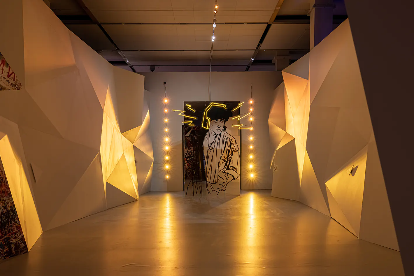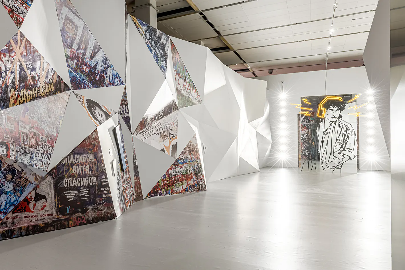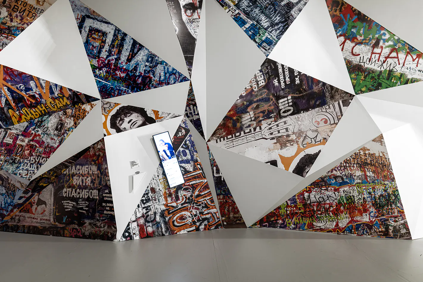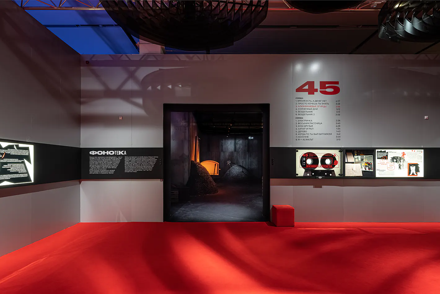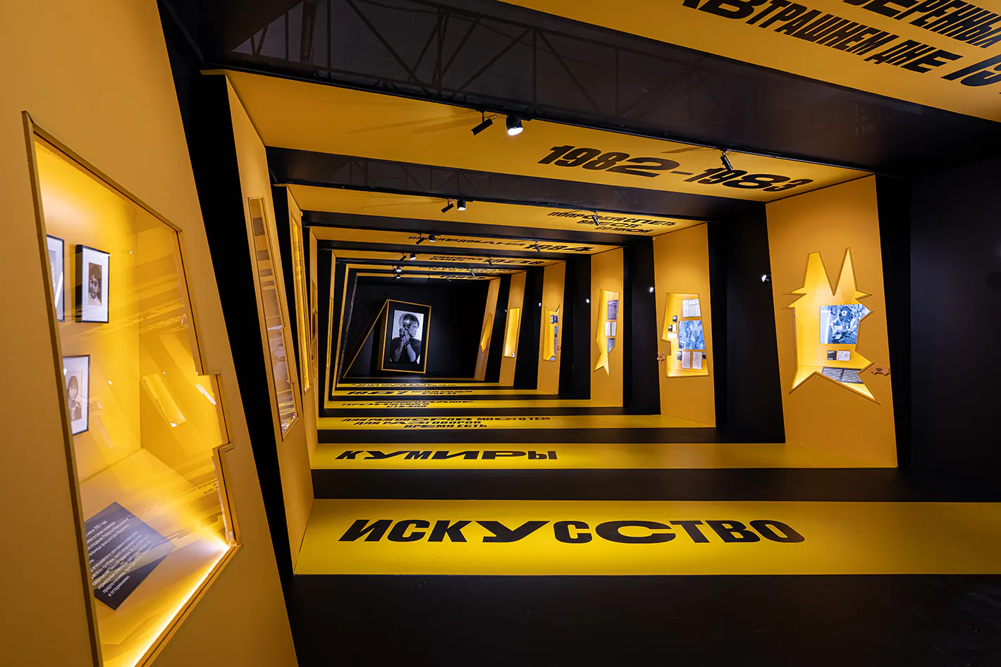 Всего пространство вмещало 11 выставочных залов, которые олицетворяли разные этапы жизни Виктора Цоя. Это позволило взглянуть на историю героя под новыми углами: не только как на культового музыканта, но и художника, актера, отца и человека с невероятной судьбой.