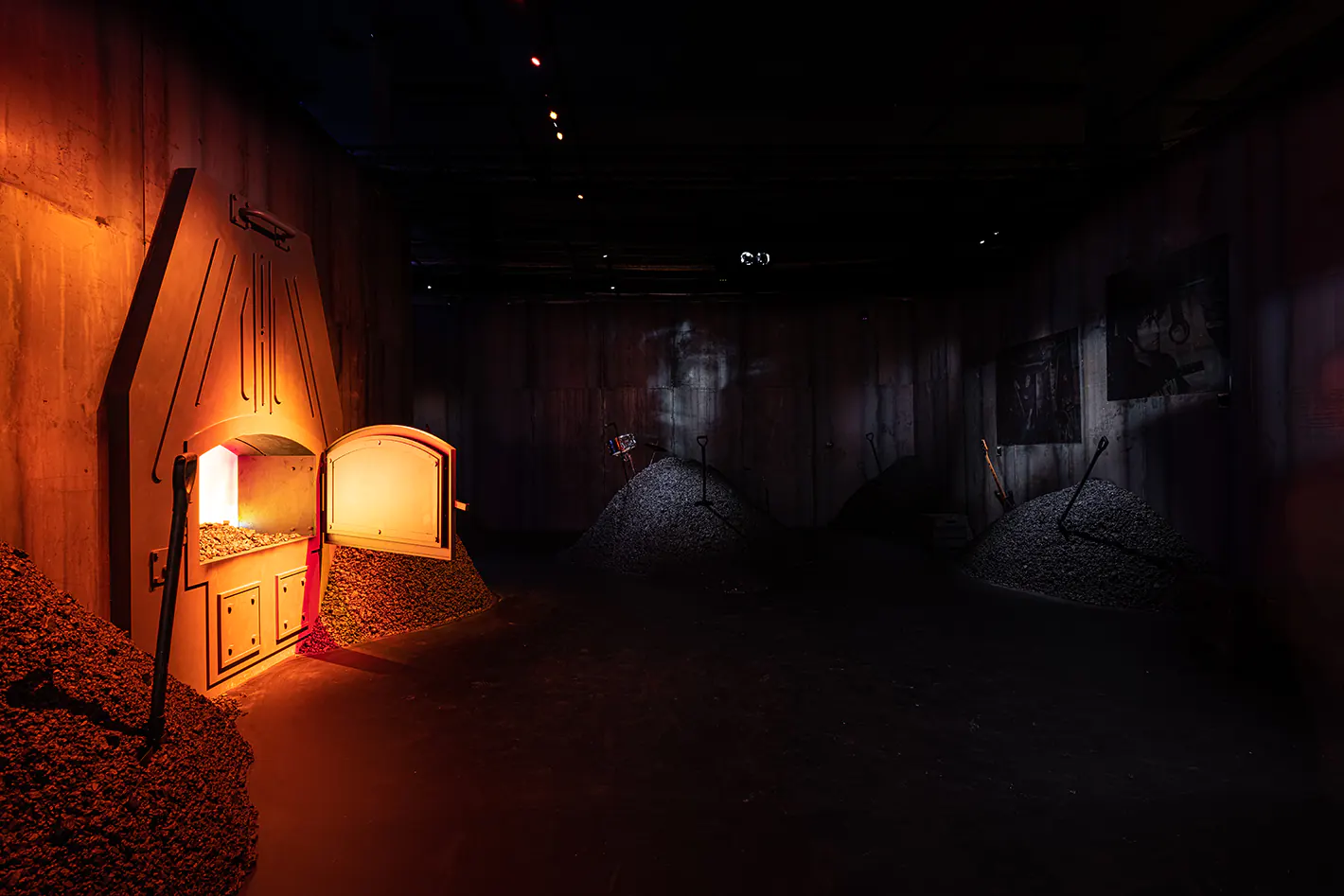 В ходе монтажа возникла сложность: тёплый оттенок света плохо ложился на искусственный уголь, плюс при включении проекционного контента в холодных тонах концепция начала окончательно разваливаться. Всё делали, как и продумали, но общая картина не складывалась.