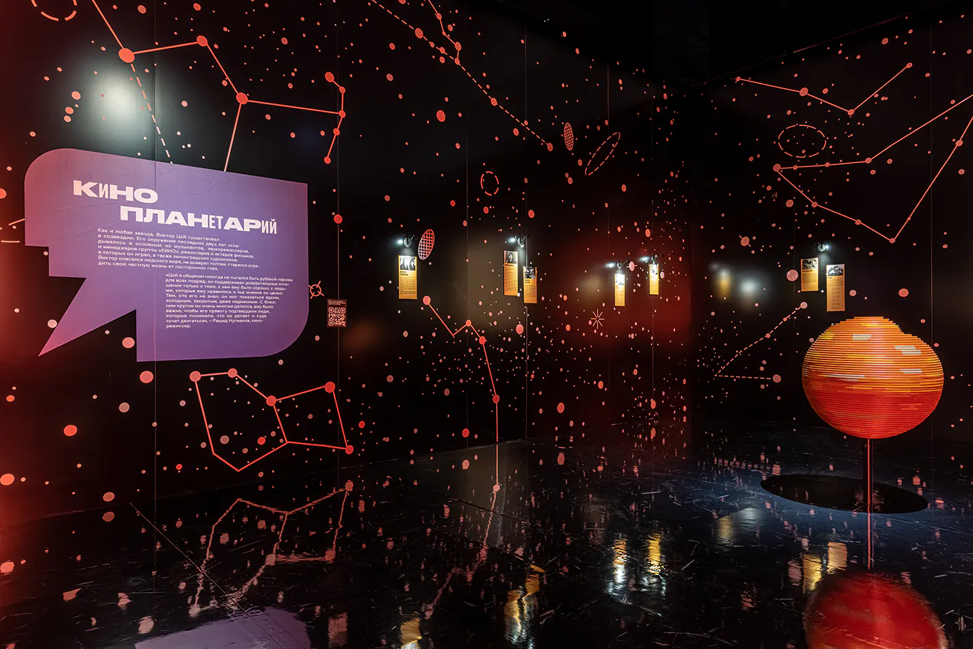 «Планетарий», конечно же, крутится вокруг «звезды по имени солнце». Её окружают 7 планет, которые посвящены главным людям в жизни Виктора Цоя. В процессе добавились «звёзды» — жёлтые карточки, посвященные друзьям и знакомым, для которых были разработаны кастомные настенные светильники.