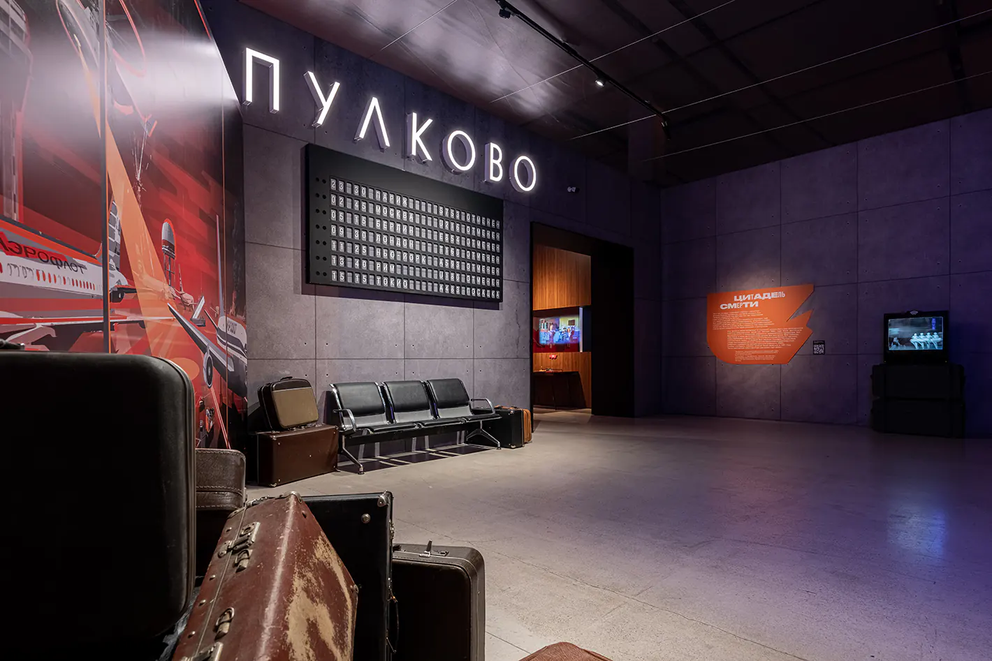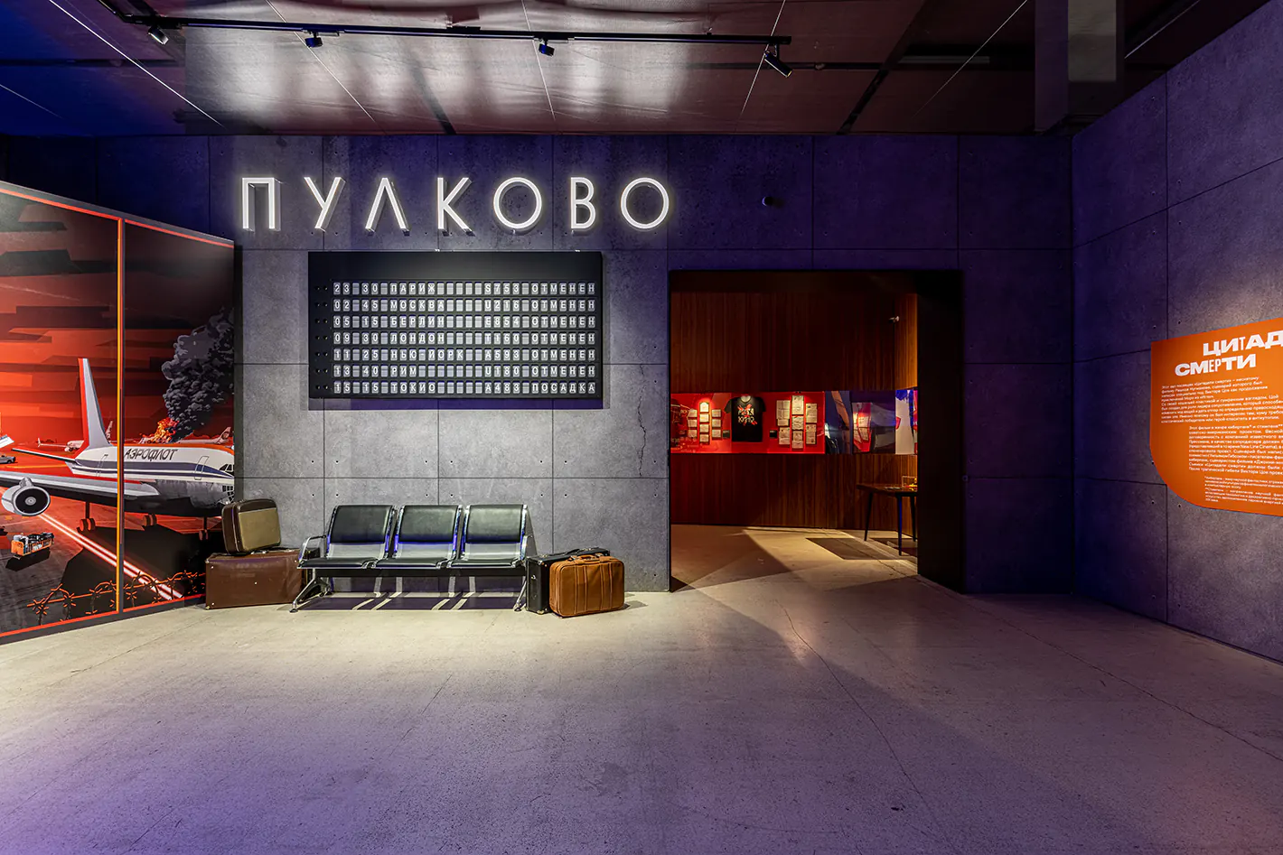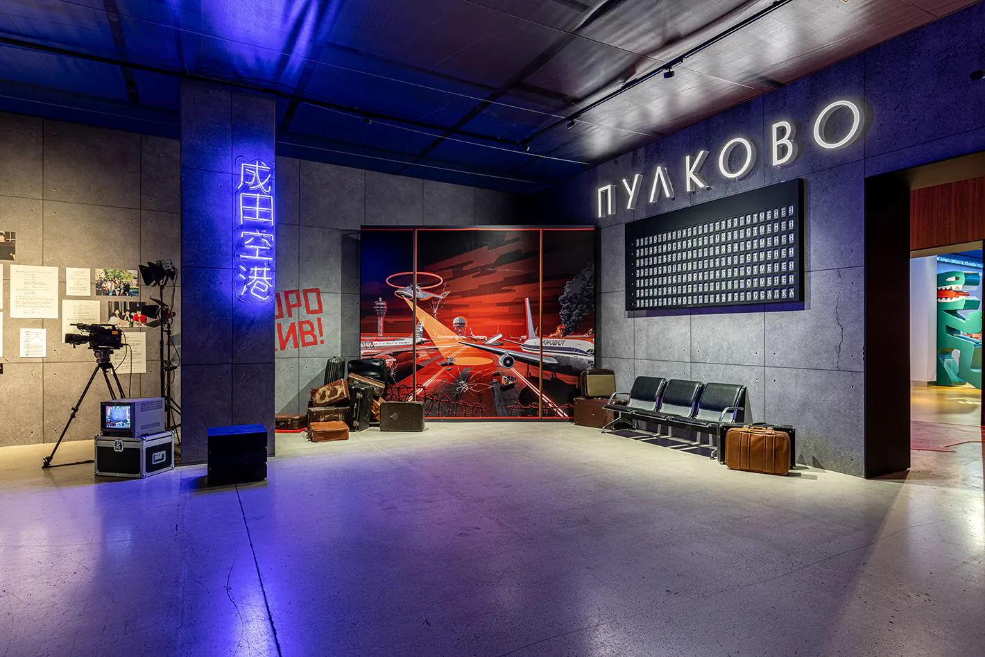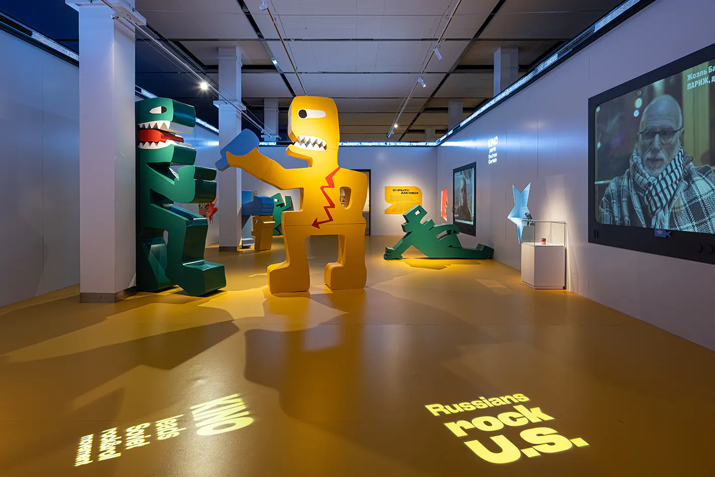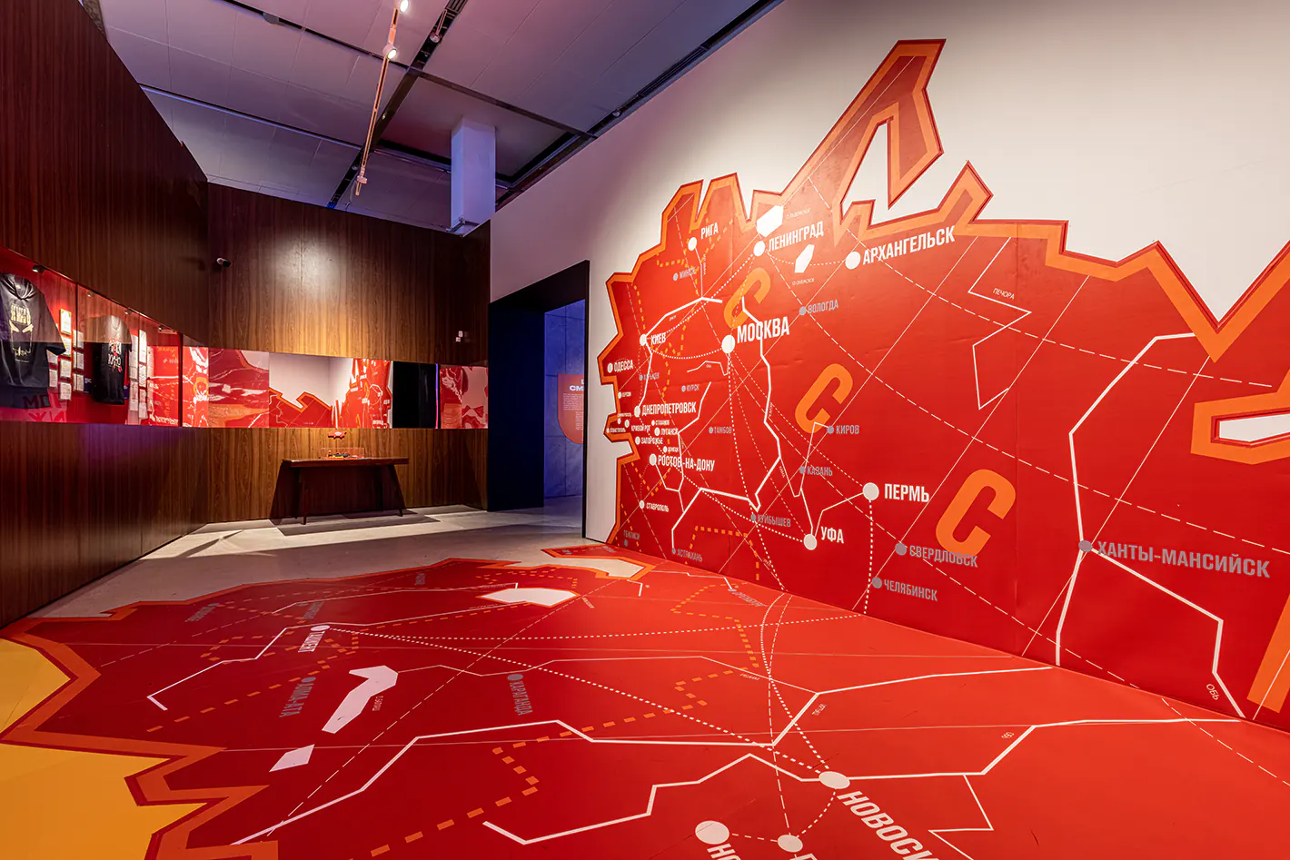 Архитектура этой экспозиции построена на контрастах. С одной стороны, за счет гигантской карты страны мы показываем масштаб творческой жизни Виктора Цоя. С другой — создаем образ тесных гримерных и казенных гостиниц, где останавливались музыканты.