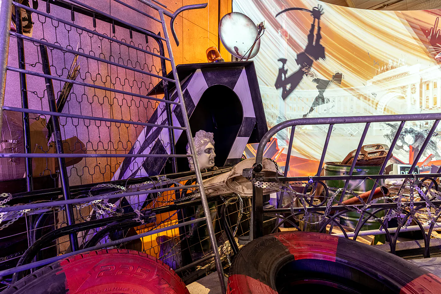 В процессе вносились изменения в облик зала, неизменными оставались проекции, неон и хаотичные объекты, имитирующие декорации из фильма. Исходя из этого, мы проектировали свет, который был бы универсален для любой застройки, но при этом объединял разрозненные световые пятна в единую композицию. Финальные корректировки мы вносили уже по месту, отталкиваясь от итоговой версии наполнения зала.
