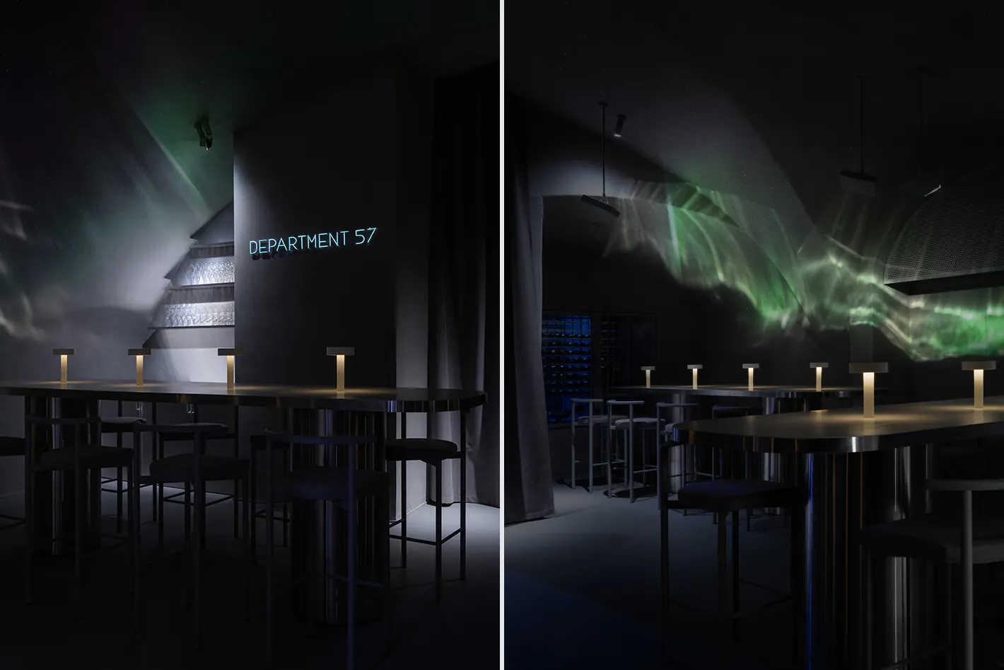 Department 57 — симбиоз громкого клуба и спокойного бара. В основу архитектурного решения бюро Da bureau легло вдохновение от природных явлений. Команда бюро светового дизайна YARKO занималась разработкой концепции освещения.