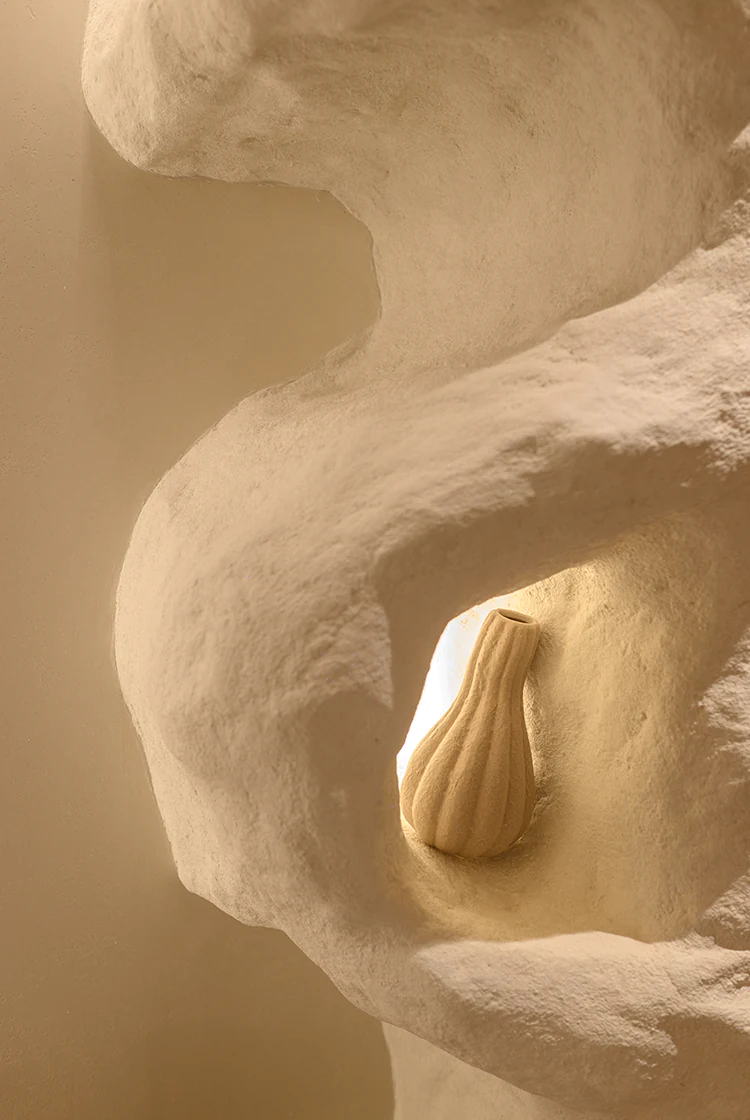 Светильник LIGHTCUT 80F со специальным GOBO-фильтром в виде ажурной панели помог спроецировать на стену световые узоры, которые напоминают солнечные разрезающие трельяж лучи.
