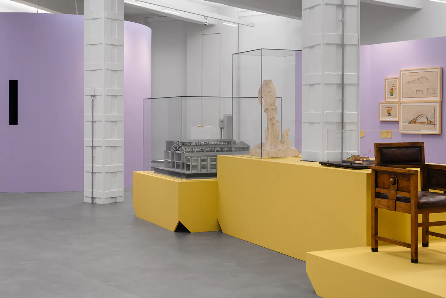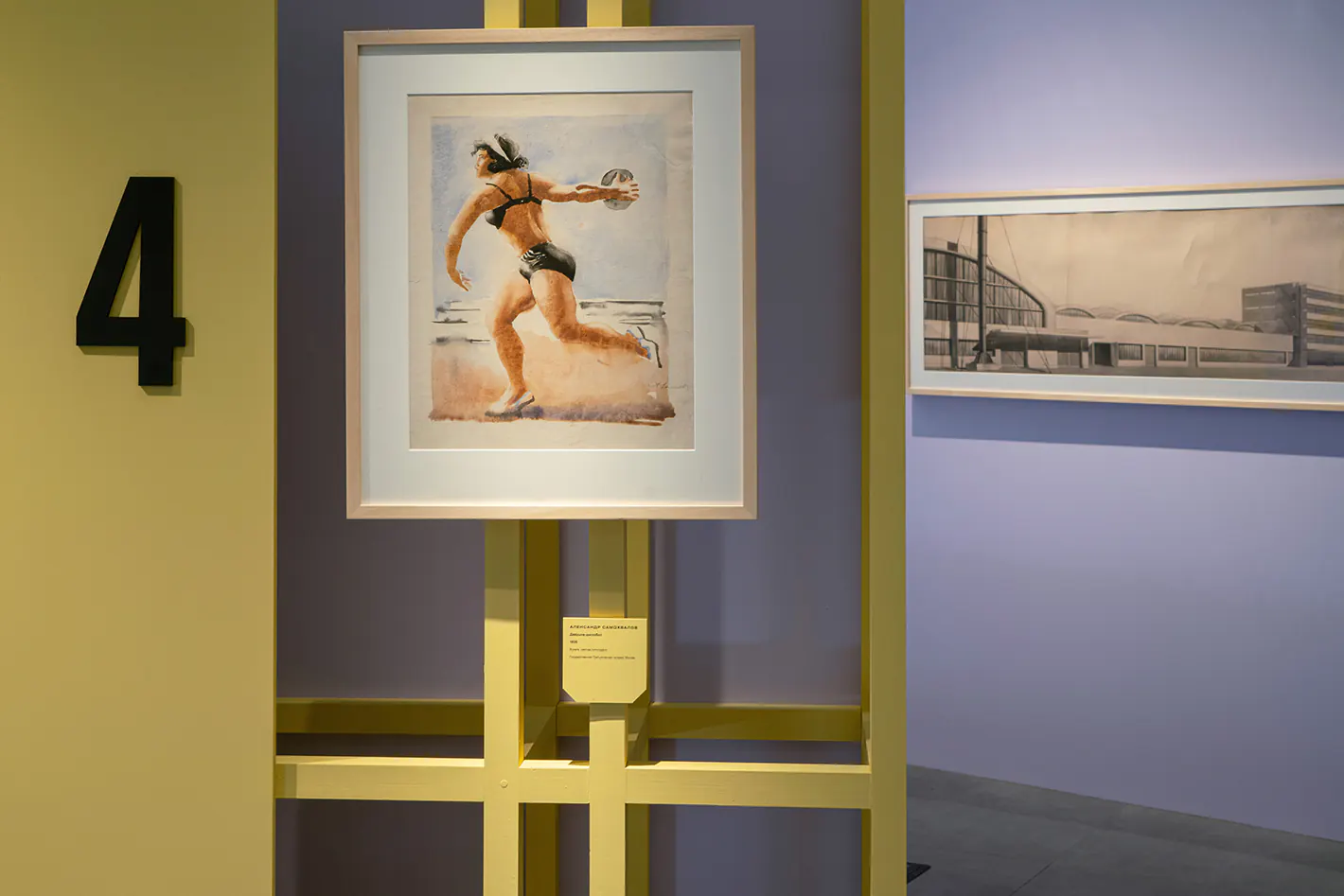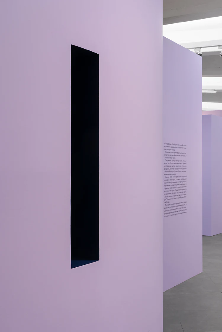 В массовом сознании творениям советских конструктивистов присущи белый, черный и красный цвета. Авторы выставки продолжили эксперименты. Узнаваемый красный разбавили нежные фиолетовые и желтые оттенки.