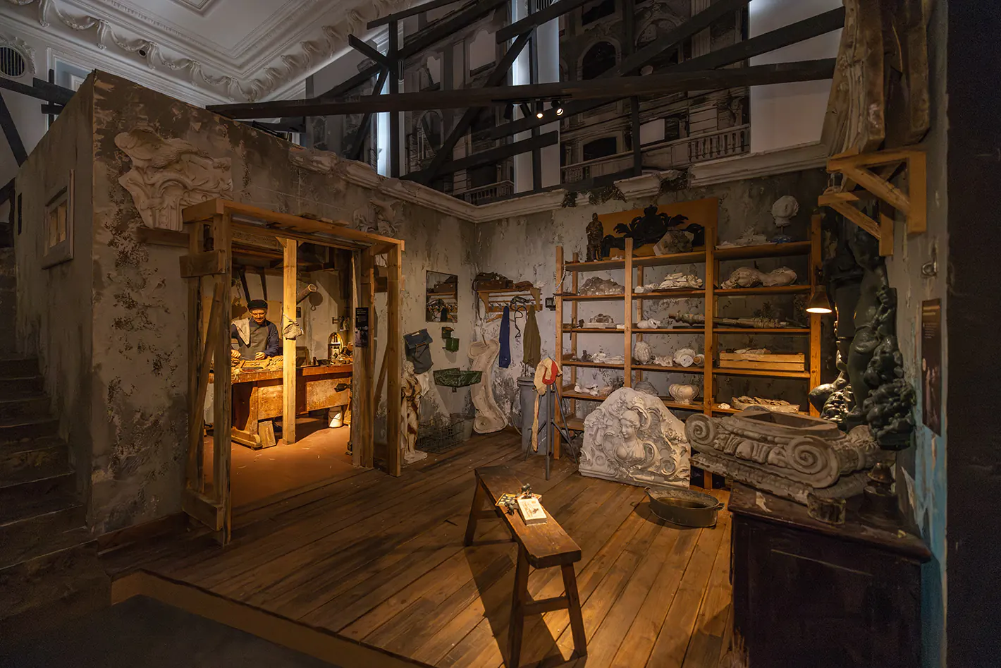Каркас скульптуры Самсона стал главной фигурой экспозиции второго этажа, посвящённой реконструкции. Приборы PUNTO ZOOM 50 II создают акценты на лице Самсона и на льве. Спереди скульптуру подсветили тёплым светом, а сзади установили контровой свет с синим светофильтром. Чёткий силуэт с игрой теней виден издалека. Когда зрители рассматривают предметы вплотную, свет не бьёт в глаза, благодаря сотовым решёткам.