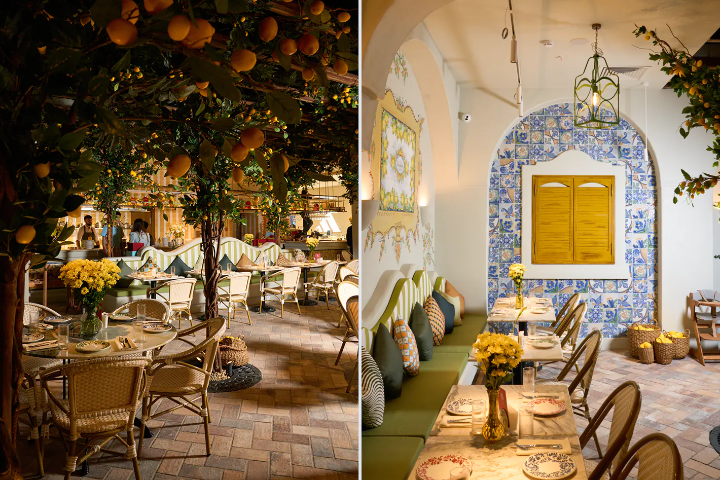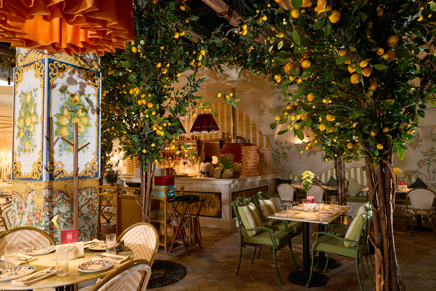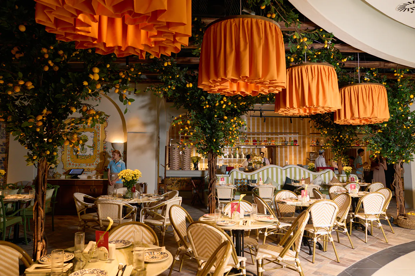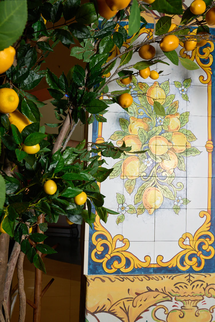 Интерьер Del Papa в Mega Park оформлен в стиле итальянского юга. Ресторан украшает плитка ручной работы и сицилийская керамика. Дизайнер Вера Хаблова выбрала тёплую цветовую гамму с морскими акцентами.