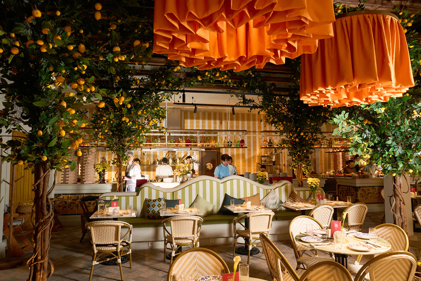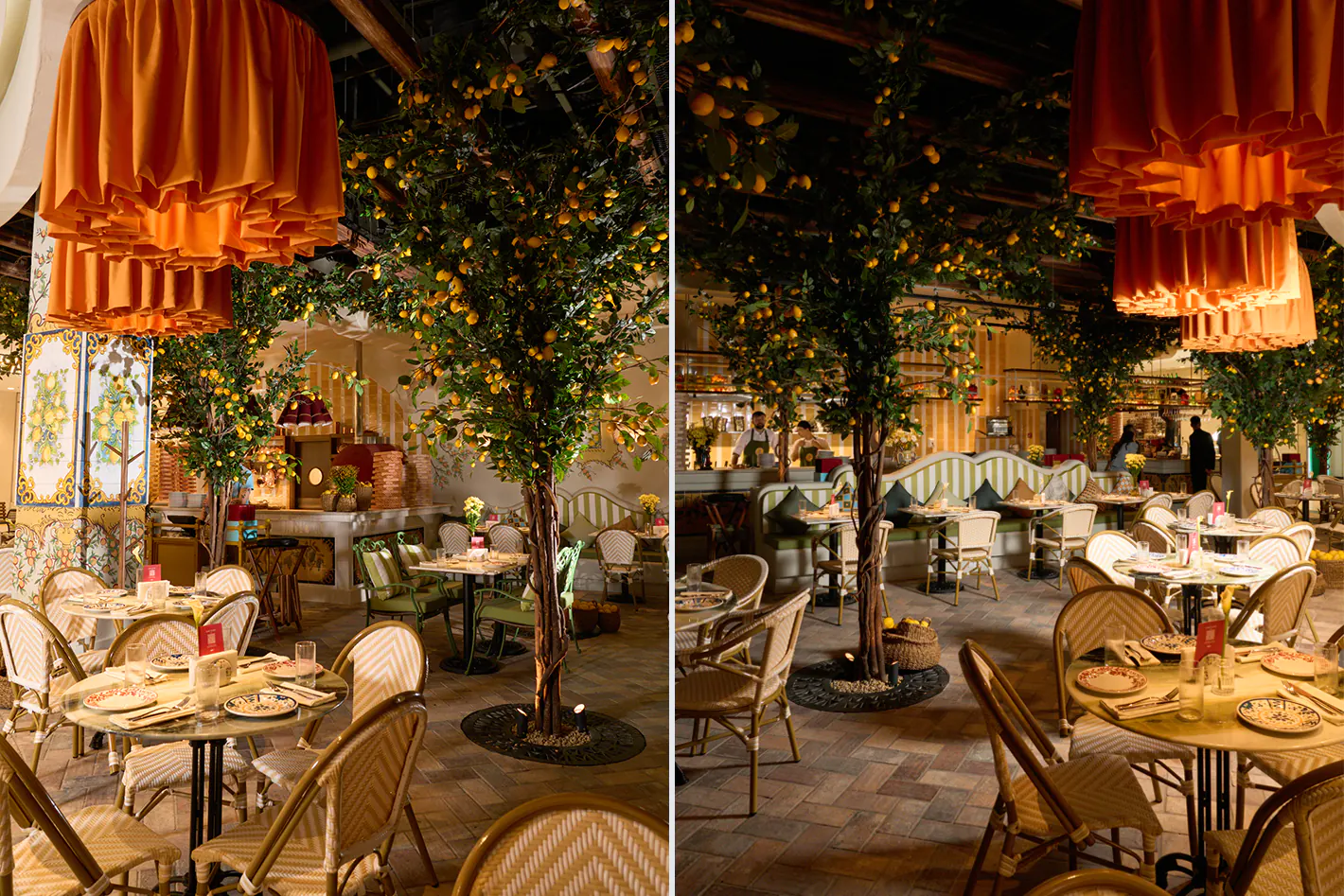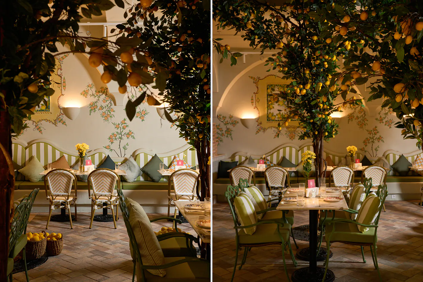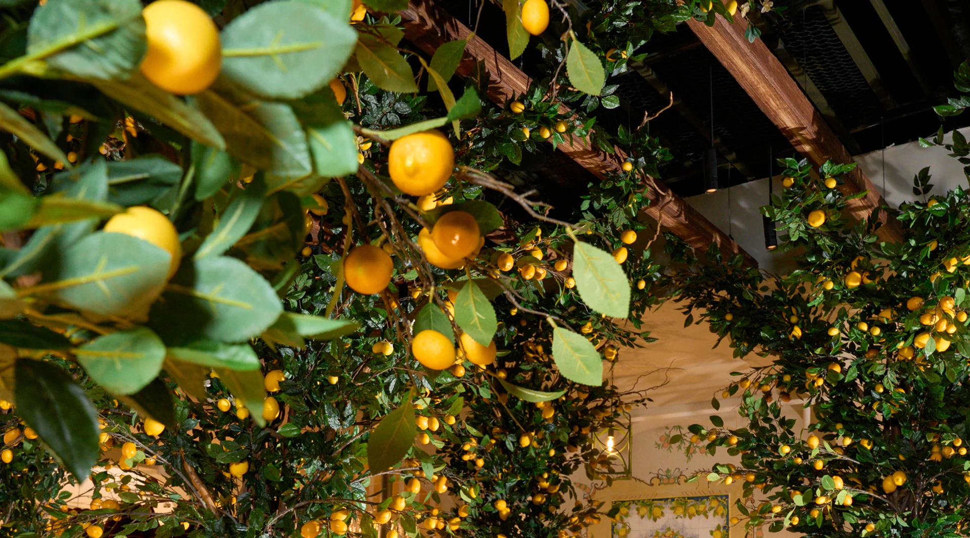 Интерьер Del Papa в Mega Park оформлен в стиле итальянского юга. Ресторан украшает плитка ручной работы и сицилийская керамика. Дизайнер Вера Хаблова выбрала тёплую цветовую гамму с морскими акцентами.