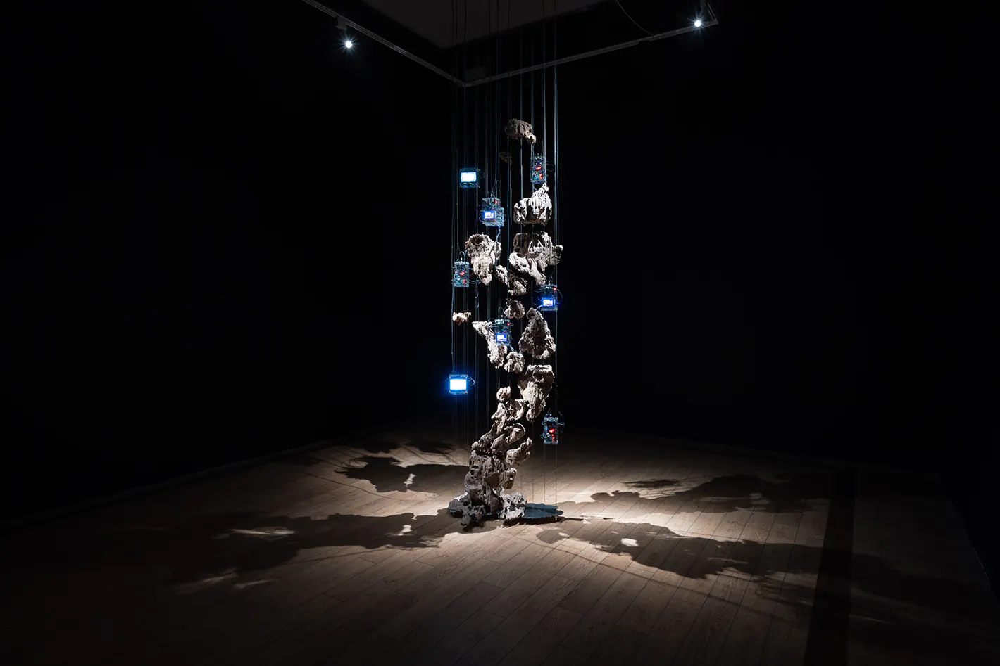 В финальном зале с инсталляцией «Стридуляции 2.0. Любовные песни саранчи» Петра Айду и Виктора Глазунова на контрасте с остальной экспозицией светом симулировали атмосферу яркого знойного дня.